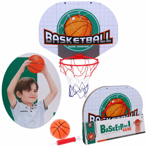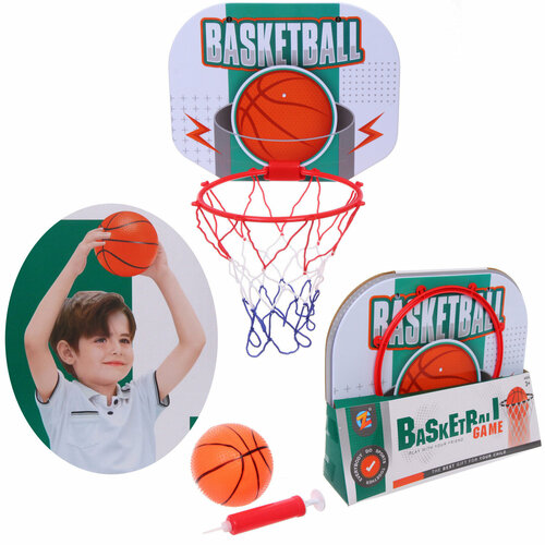 Набор для игры в баскетбол, набор тренировочный для баскетбола: кольцо 40*30 см, сетка, мяч 12 см, насос