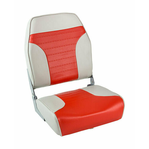 Кресло складное мягкое ECONOMY с высокой спинкой, цвет серый/красный для лодки / катера