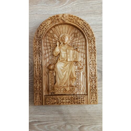 Икона резная "Господь Вседержитель(Спас на престоле) из ясеня 23х16см