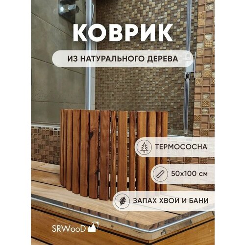 Коврик деревянный из термососны 50х75 / SRWood / для ванной / для бани и сауны / для дома/ для дачи / противоскользящий