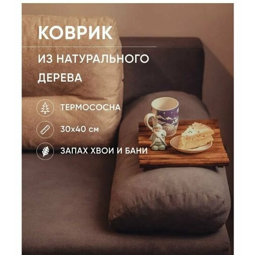 Коврик деревянный универсальный из термососны, для кухни, для сушки посуды, в ванную, для бани. 30х40 см.