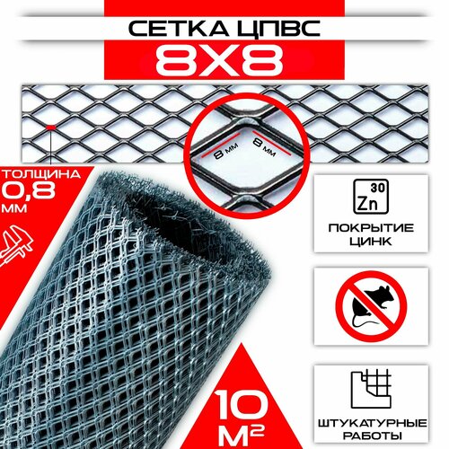 Сетка 8 х 8 мм 1х10м ЦПВС от грызунов оцинкованная рулон / просечно-вытяжная