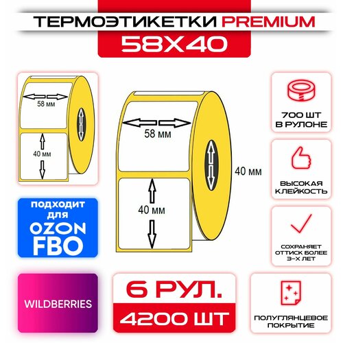 Термоэтикетки 58х40 мм (уп - 6шт, 700шт в рулоне) ЭКО, для термопринтера / для Озон / Самоклеящиеся