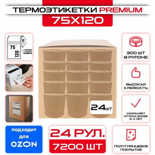 Термоэтикетки 75х120 мм (уп - 24шт, 300шт в рулоне) ЭКО, для термопринтера / для Озон / Самоклеящиеся