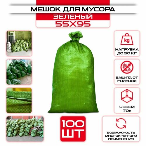 Мешок п/п строительный зеленый 95х55 (40 гр, 100шт/уп)