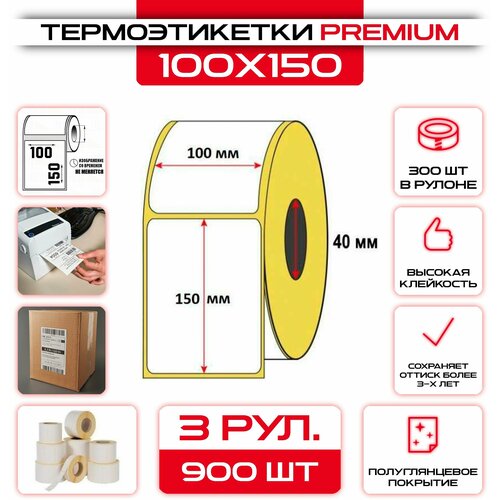 Термоэтикетки 100х150 мм (уп - 3шт, 300шт в рулоне), для термопринтера / для Озон / Самоклеящиеся