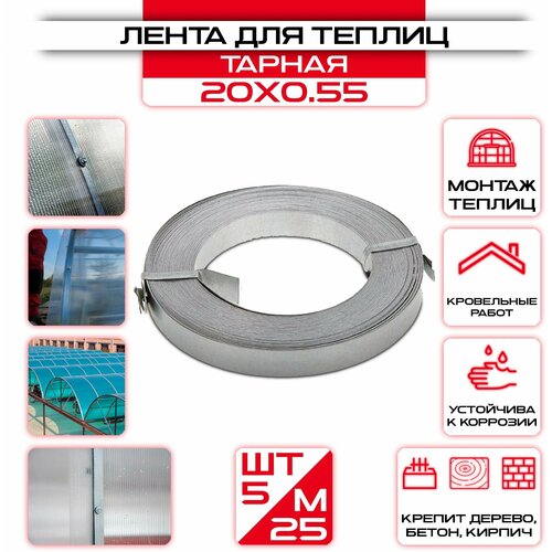 Лента для теплиц 20 х0,55 мм, длинна 25 метров (5 шт) /лента для парника / лента тарная / для защиты поликарбоната