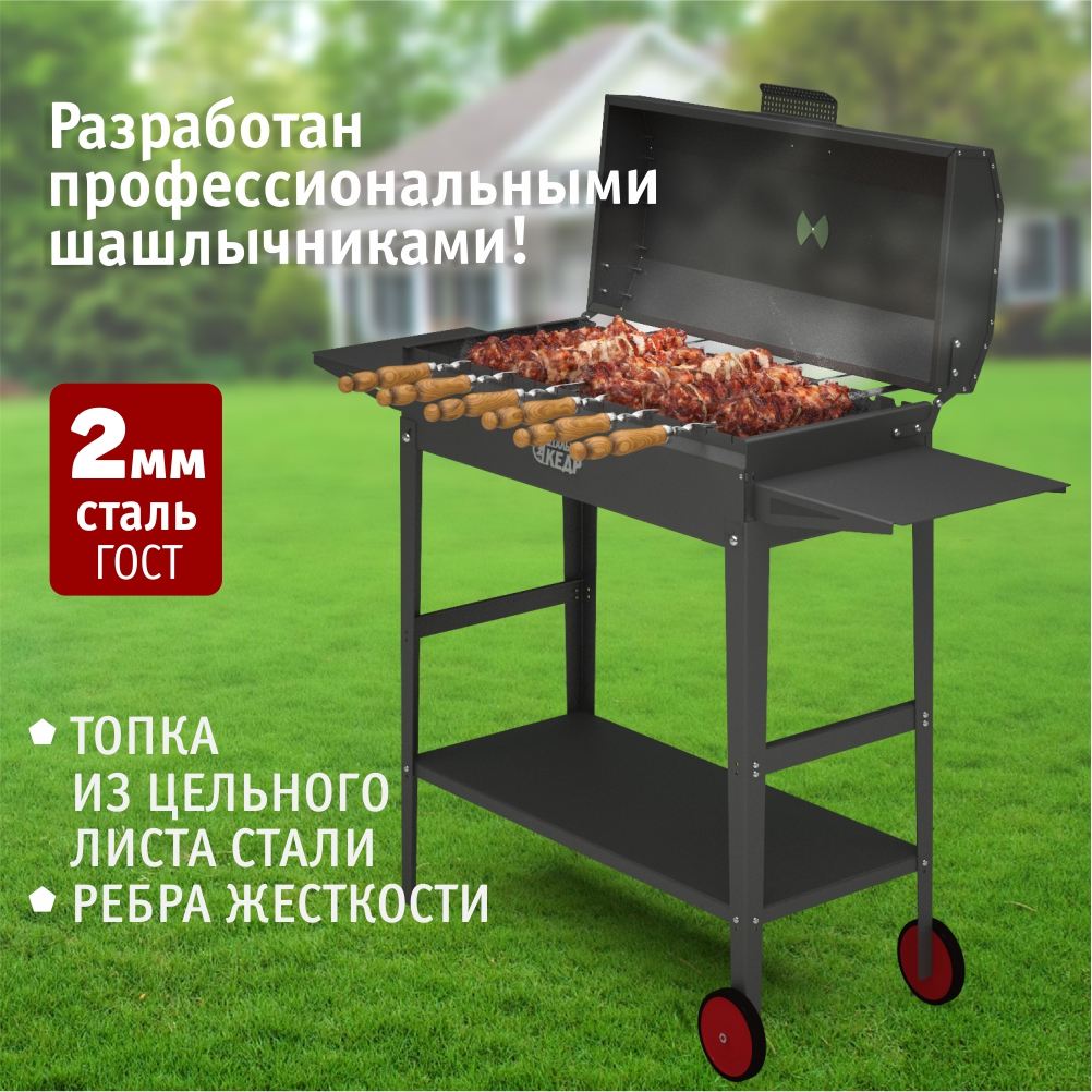 Мангал для дачи, сталь 2мм, с крышкой и термометром, кочерга в подарок, Стальной кедр