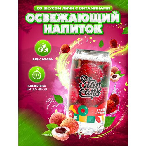 Напиток газированный со вкусом Личи StarCans Лимонад без сахара Газировка 12 шт