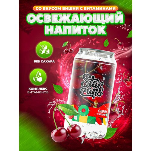 Напиток газированный со вкусом Вишня StarCans Полезная вода Вишневый лимонад с витаминами без сахара без калорий