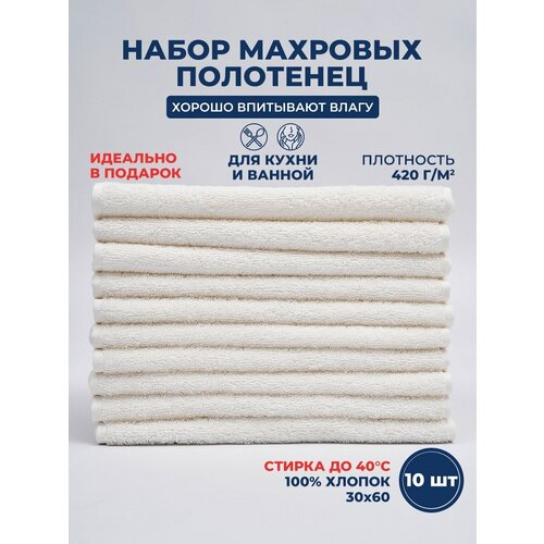 Полотенце банное махровое однотонное хлопок в наборе 10 штук