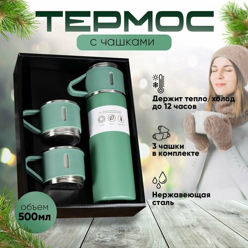 Набор термос с кружками, термос для чая с 3 кружками, 500 мл