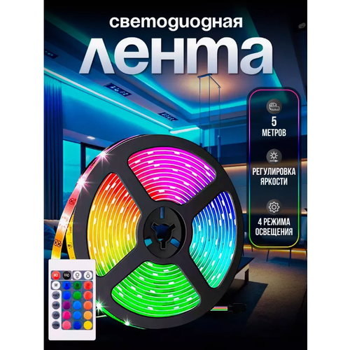 Светодиодная лента с пультом многоцветная 10м, rgb, 12v, с пультом и блютуз