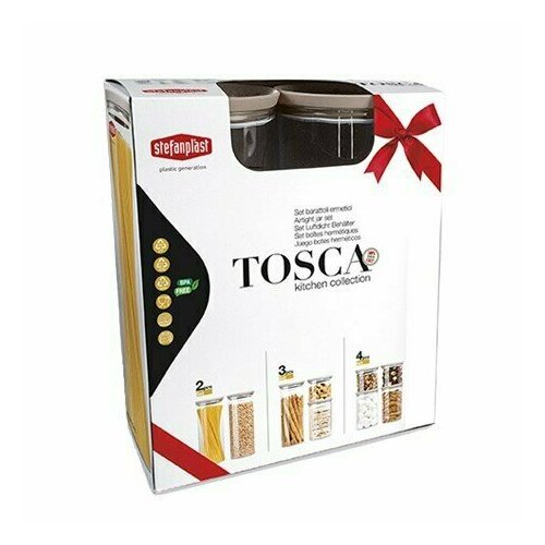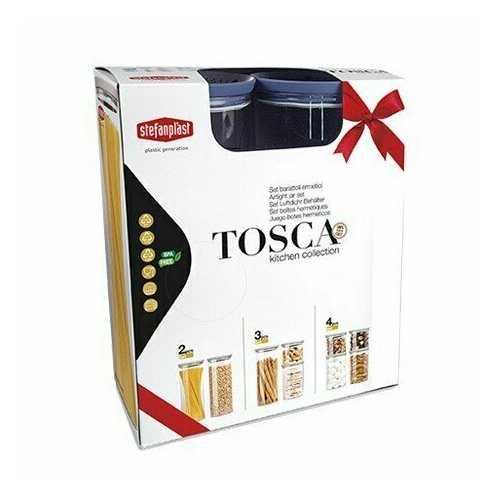 Подарочный набор из 3-х круглых банок разного размера "TOSCA". Сделано В италии. (0,7 л + 1,2 л + 2,2 л). Прозрачный с синей крышкой