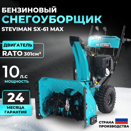 Бензиновый снегоуборщик Steviman SX-61MAX, снегоуборочная машина (10 л. с, захват 61 (+6) см, вес 96 кг), двигатель RATO, прогрессивная панель управления