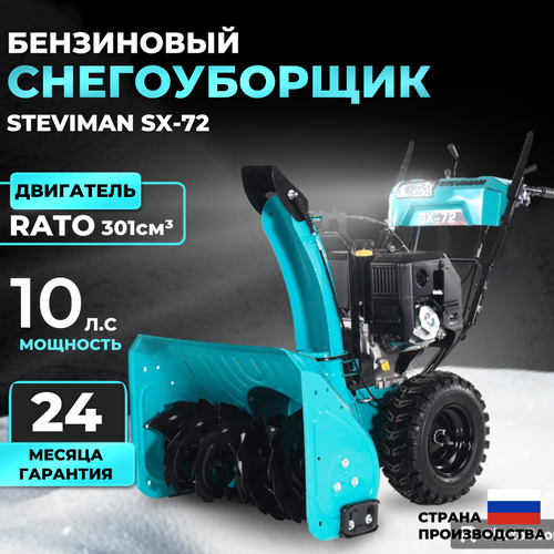 Бензиновый снегоуборщик Steviman SX-72, снегоуборочная машина (10 л. с, захват 72 см, вес 104кг)