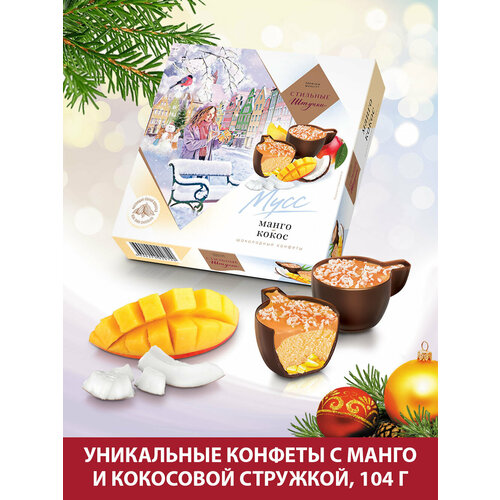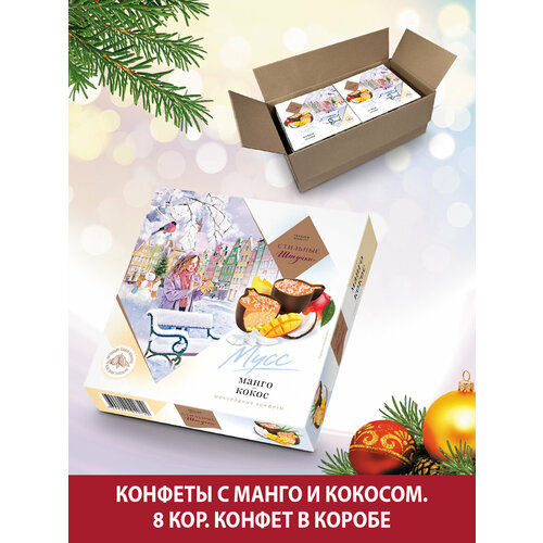 Конфеты шоколадные Стильные штучки Мусс манго-кокос подарочные в новогодней коробке, 8 шт по 104 г