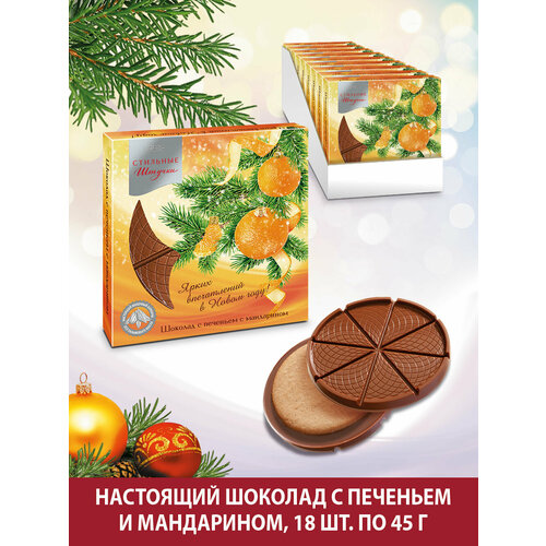 Конфеты шоколадные Стильные штучки с мандарином подарочные в новогодней коробке, 8 шт по 104 г