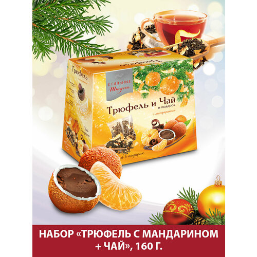 Конфеты шоколадные Стильные штучки драже трюфель с мандарином и чаем подарочные в новогодней коробке, 160 г