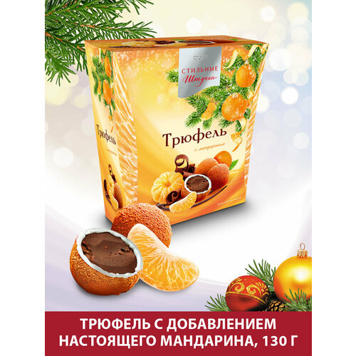Конфеты шоколадные Стильные штучки драже трюфель с мандарином подарочные в новогодней коробке, 130 г