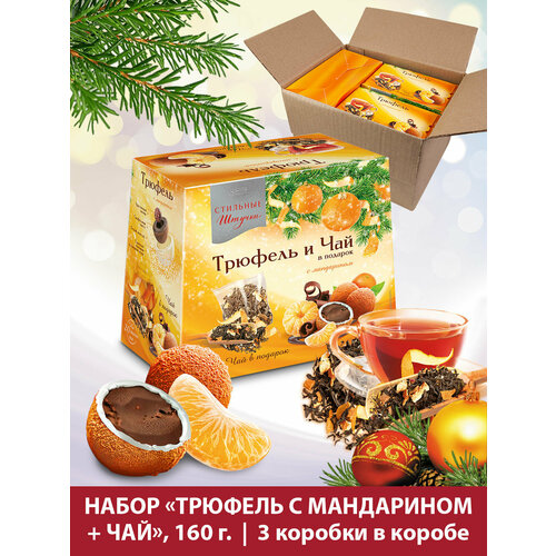 Конфеты шоколадные Стильные штучки драже трюфель с мандарином и чаем подарочные в новогодней коробке, 3 шт по 160 г