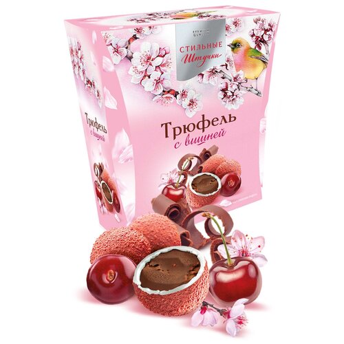 Конфеты шоколадные Стильные штучки драже трюфель с вишней подарочные в весенней коробке, 130 г