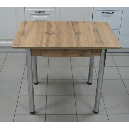 Стол обеденный Прямоугольный с ящиком 90*60 см. лдсп Дуб Ватан ножки Хром. Кухонный Стол.