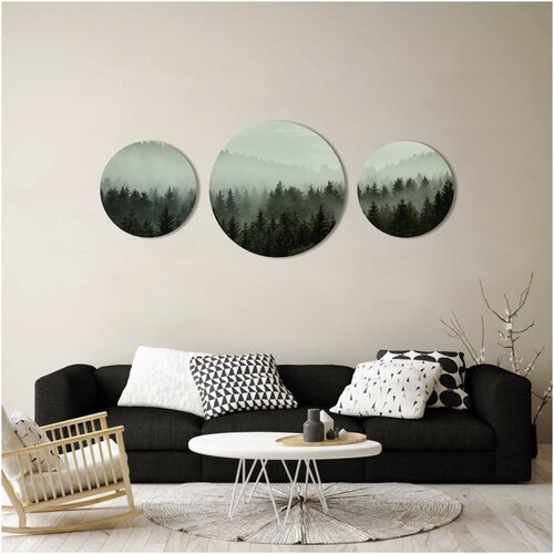 Набор из интерьерных круглых картин на холсте, "Таинственный лес" от STUDIO A3", 3 шт. в подарок (ECO - печать)