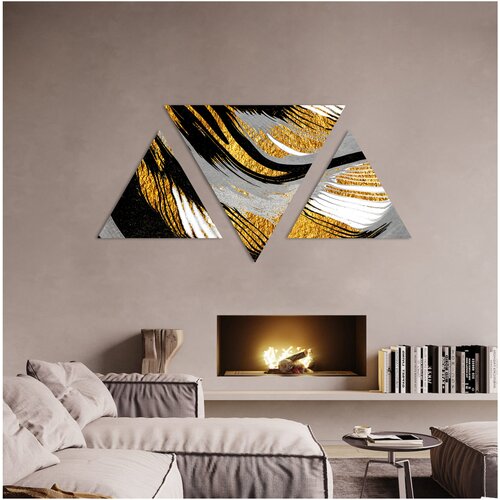 Треугольный триптих на хлопковом холсте "Золотые текстуры" от STUDIO A3 для дома / для интерьера / в подарок (ECO - печать)