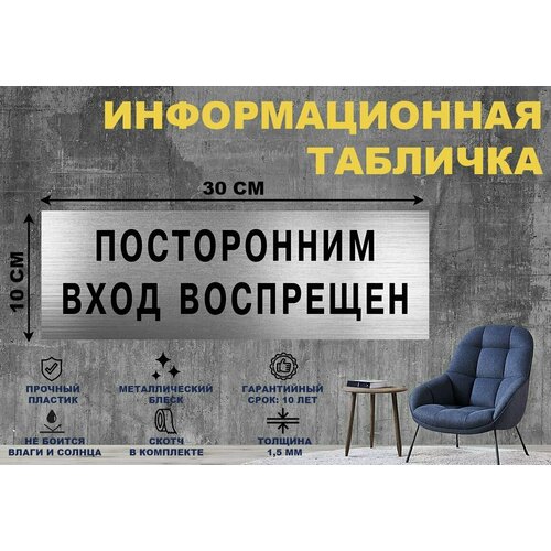 Табличка "посторонним вход воспрещен" на стену и дверь 300*100 мм с двусторонним скотчем