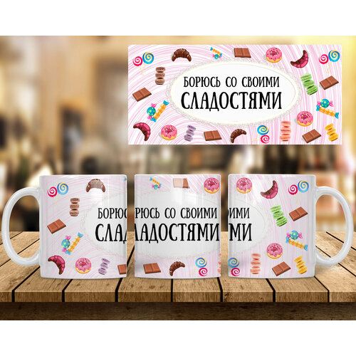 Кружка с принтом Студия Белка "Борюсь со своими сладостями", 330 мл