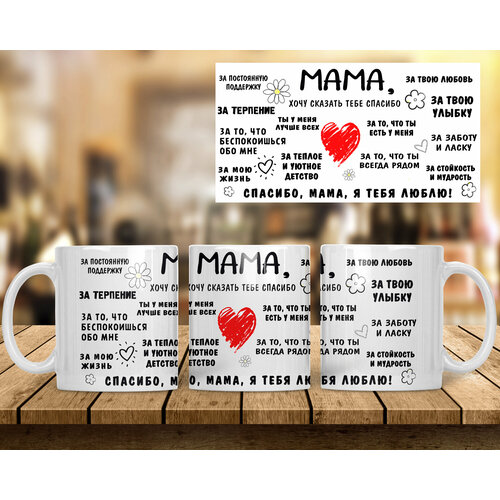 Кружка с принтом Студия Белка "Мама, хочу сказать тебе спасибо", 330 мл