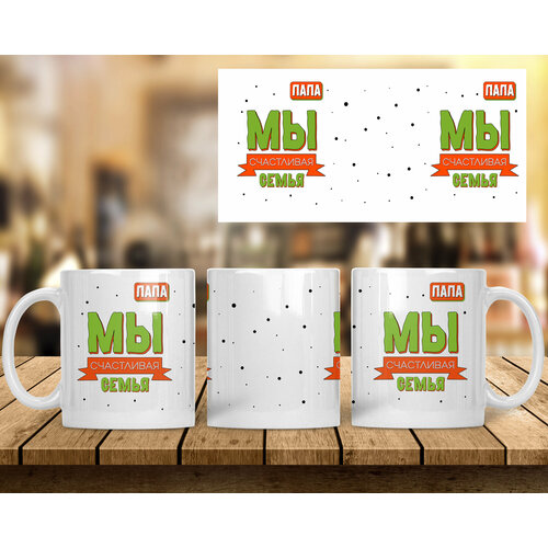 Кружка с принтом Студия Белка "Мы счастливая семья - папа", 330 мл