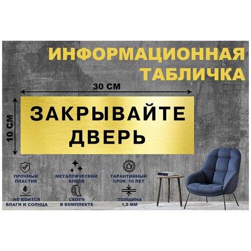Табличка "закрывайте дверь" на стену и дверь 300*100 мм с двусторонним скотчем