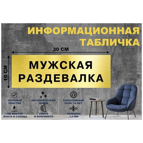Табличка "мужская раздевалка" на стену и дверь 300*100 мм с двусторонним скотчем