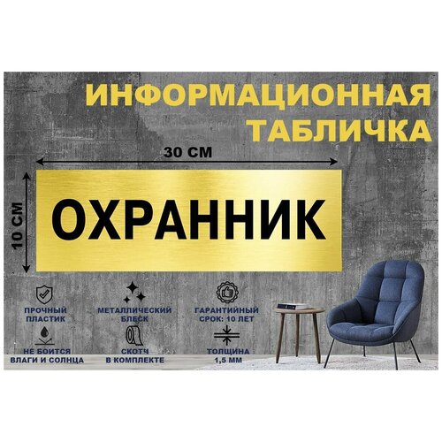 Табличка "охранник" на стену и дверь 300*100 мм с двусторонним скотчем