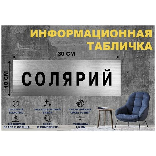 Табличка "солярий" на стену и дверь 300*100 мм с двусторонним скотчем