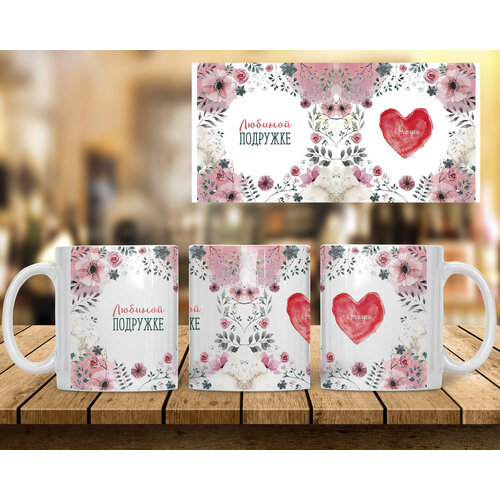Кружка с принтом Студия Белка "Любимой подружке", 330 мл