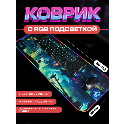Большой коврик для мыши с подсветкой "Кибер панк" (80x30см)