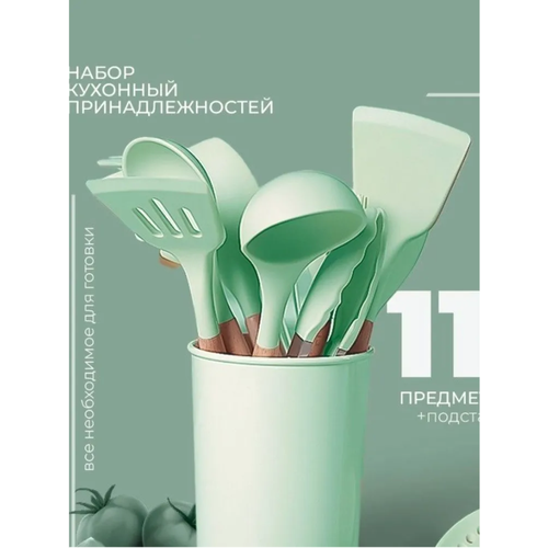 Набор кухонных принадлежностей с подставкой, мятный, 11 предметов