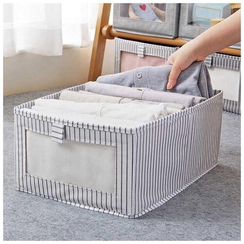 Органайзер для хранения 40*27*17 см / коробка для вещей с окном / ящик для хранения (белая полоска)