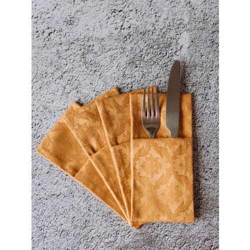 Конверт текстильный под приборы желто-терракотовый 4 шт.