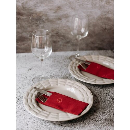 Конверт текстильный под приборы белый-бордовый 4 шт.
