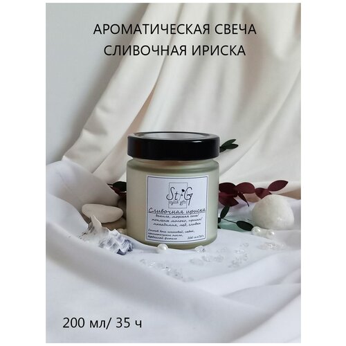 Свеча ароматическая "Сливочная ириска"/Аромасвеча в банке/Деревянный потрескивающий фитиль/35 ч