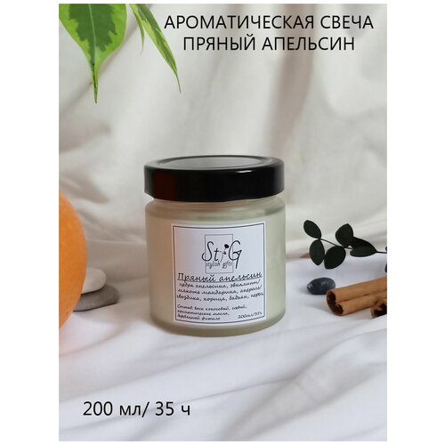 Свеча ароматическая "Пряный апельсин"/Аромасвеча в банке/Деревянный потрескивающий фитиль/35 ч. горения, 200 мл