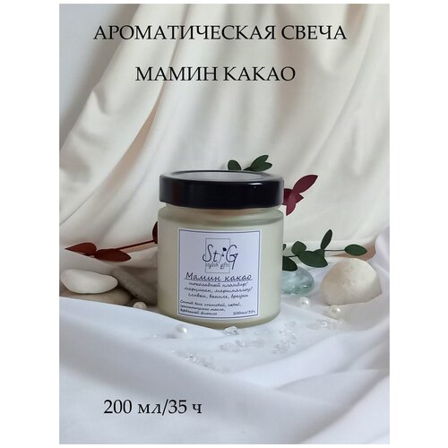 Свеча ароматическая "Мамин какао"/Аромасвеча в банке/Деревянный потрескивающий фитиль/35 ч. горения, 200 мл