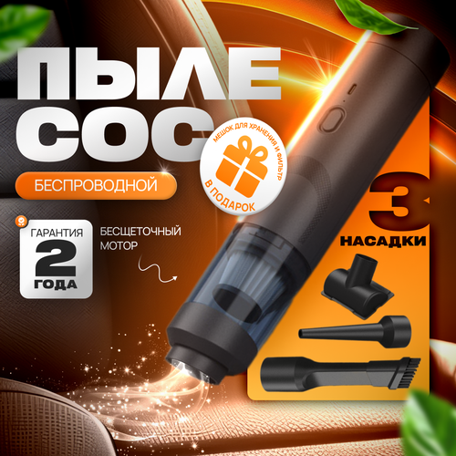 Беспроводной ручной пылесос-воздуходувка для авто и дома с 3 насадками и бесщеточным мотором