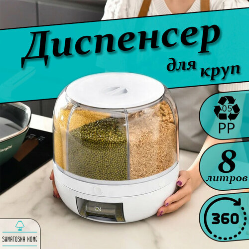 Диспенсер с дозатором для круп и сыпучих продуктов, 8 литров, Белый