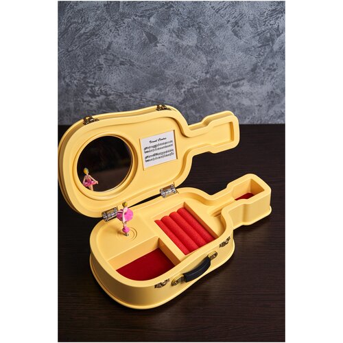 Шкатулка музыкальная с отделениями для украшений Гитара Желтая