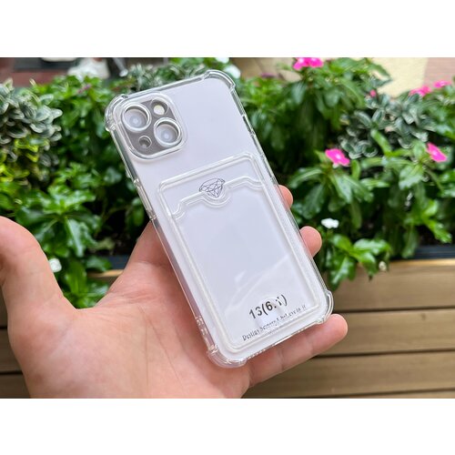 Чехол на iPhone 13 / Айфон 13 с картхолдером и усиленными углами, прозрачный